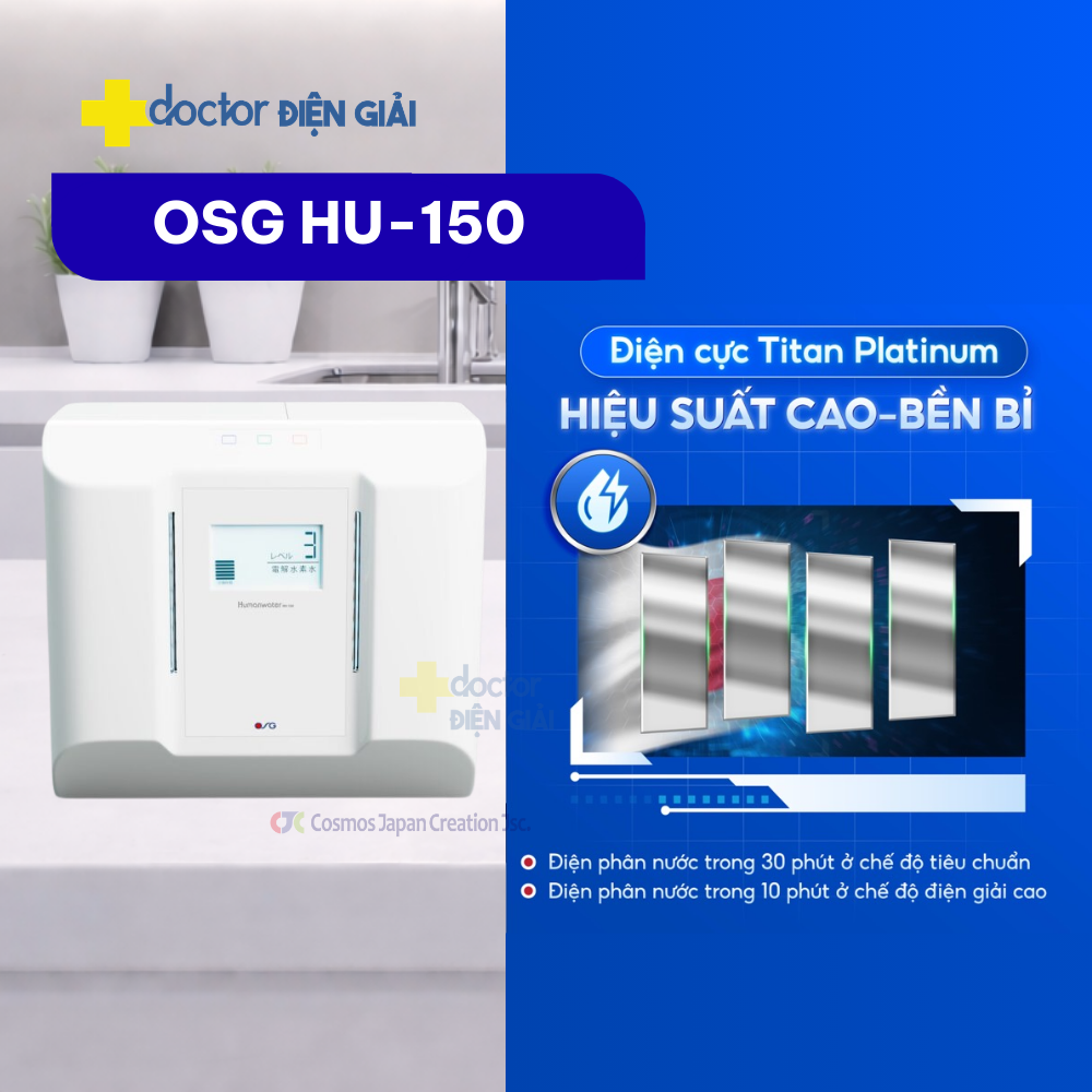 OSG Human Water HU-150 là dòng máy điện giải ion kiềm đến từ Nhật Bản, nổi bật với thiết kế tối giản, dễ sử dụng và phù hợp với nhiều không gian bếp hiện đại. Sản phẩm được trang bị công nghệ điện phân tiên tiến giúp tạo ra nguồn nước ion kiềm giàu Hydrogen, mang lại nguồn nước sạch, an toàn và tốt cho sức khỏe của cả gia đình.