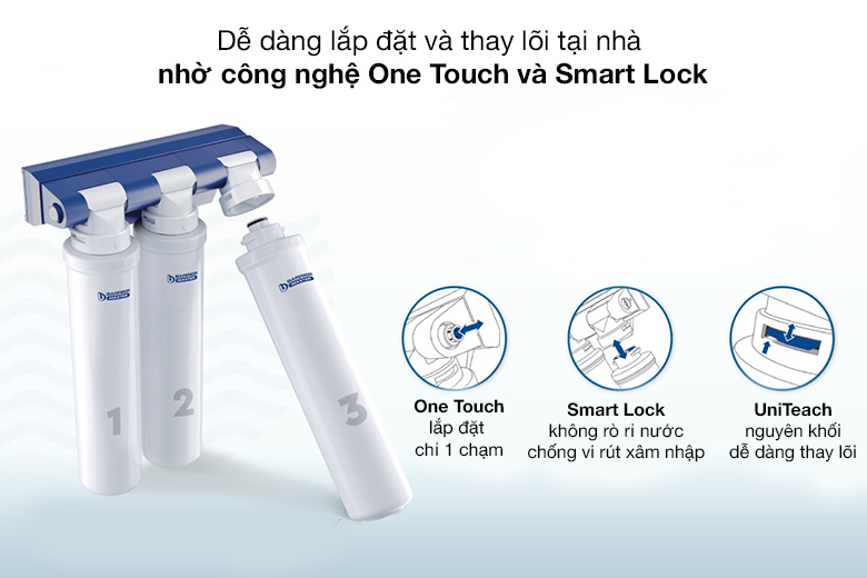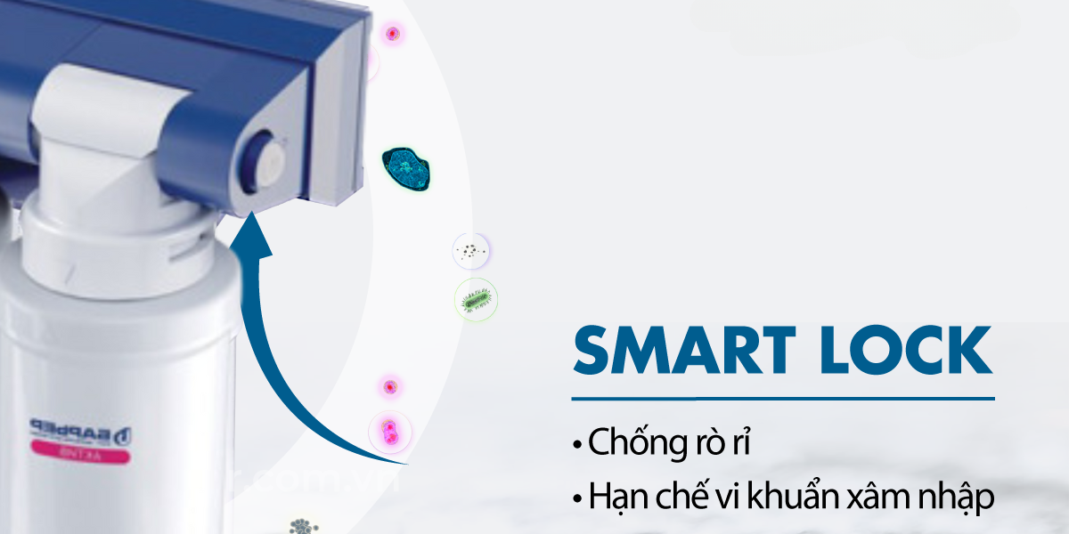 Ngoài ra, công nghệ Smart Lock độc quyền cùng thiết kế nguyên khối lõi lọc luôn được bảo vệ tuyệt đối chống sự xâm nhập của vi khuẩn, virus cũng như hạn chế tình trạng rò rỉ nước ở các sản phẩm máy lọc nước khác trên thị trường.