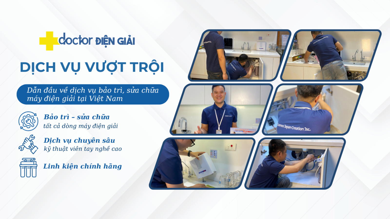 Khi lựa chọn máy lọc nước ion kiềm tại Doctor Điện Giải, khách hàng không chỉ đơn thuần sở hữu một thiết bị chăm sóc sức khỏe cao cấp mà còn được trải nghiệm một hệ thống dịch vụ toàn diện, được xây dựng theo tiêu chuẩn chuyên nghiệp nhằm đảm bảo hiệu quả sử dụng lâu dài và sự an tâm tuyệt đối trong suốt quá trình vận hành sản phẩm.
