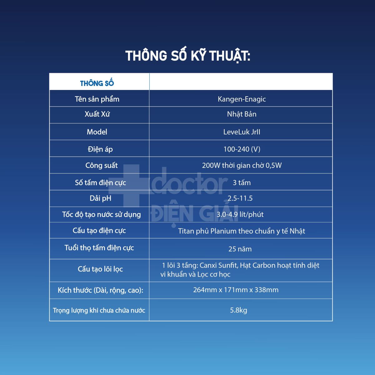 Máy lọc nước ion kiềm Kangen LeveLuk JrII là dòng sản phẩm có giá mềm nhất trong số các máy điện giải đến từ thương hiệu Kangen Enagic - tập đoàn đi đầu trong lĩnh vực sản xuất máy lọc nước iON kiềm Nhật Bản được thành lập từ năm 1974 đã có mặt trên khắp 150 quốc gia và các vùng lãnh thổ khác trên thế giới như: Mỹ, Singapore, Ý, Pháp, Canada, Đức, Hà Lan, Hàn Quốc, Nhật Bản…