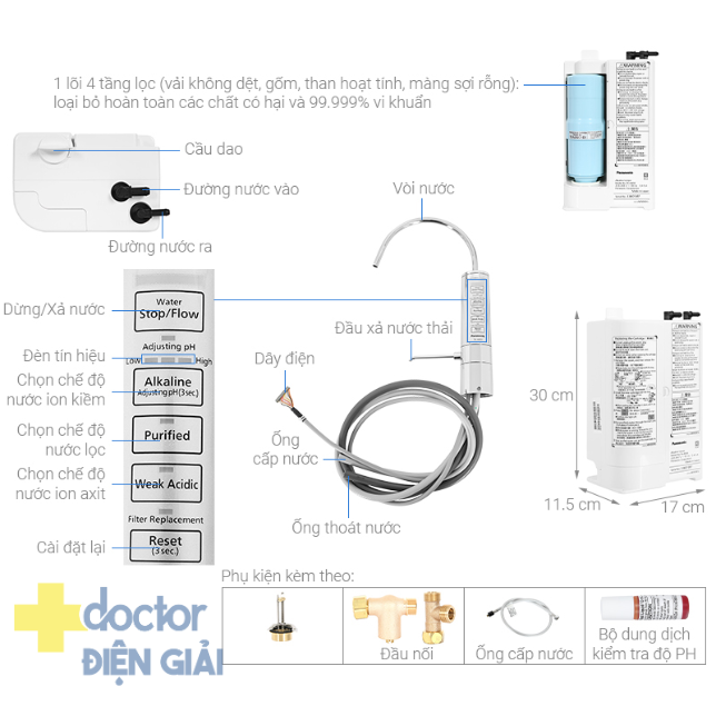 Hệ thống lọc 4 giai đoạn có thể loại bỏ 99,99% vi khuẩn theo tiêu chuẩn Nhật Bản