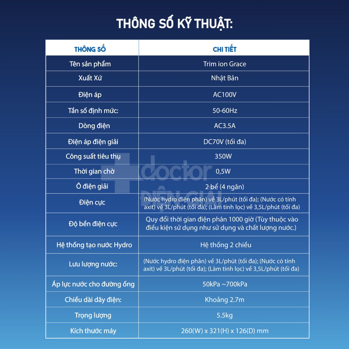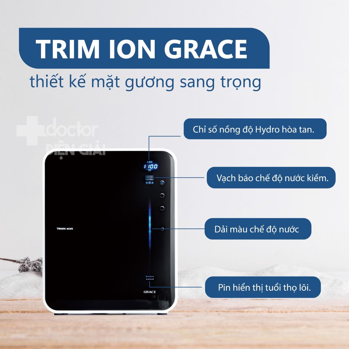 Máy lọc và tạo nước ion kiềm giàu Hydro Trim ion Grace được sản xuất tại Nhật Bản phát triển bởi tập đoàn Nihon Trim - Tập đoàn hàng đầu Nhật Bản trong lĩnh vực nước sức khỏe