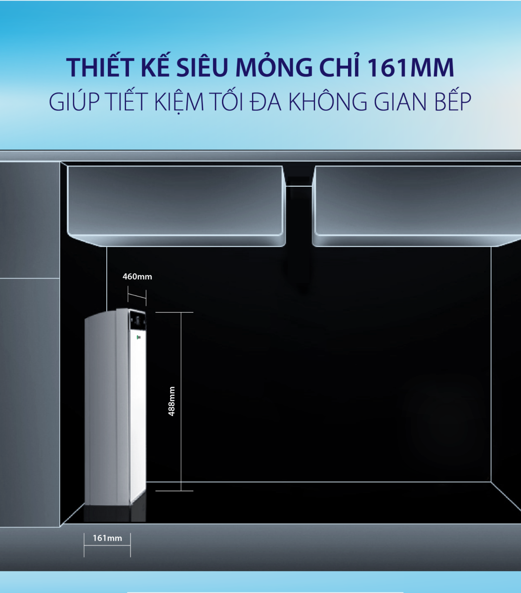 AR600-U3 sở hữu thiết kế siêu mỏng với độ dày chỉ 161mm, giúp tiết kiệm tối đa không gian bếp cho gia đình bạn