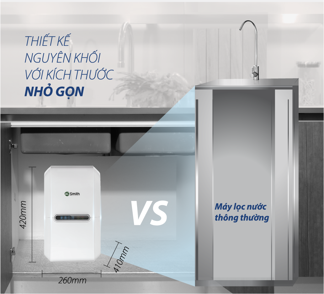 Thiết kế nhỏ gọn, tiện nghi phục vụ cho việc lắp đặt dưới chậu rửa, phù hợp với mọi gia đình, giúp nguồn nước của gia đình bạn luôn tinh khiết.