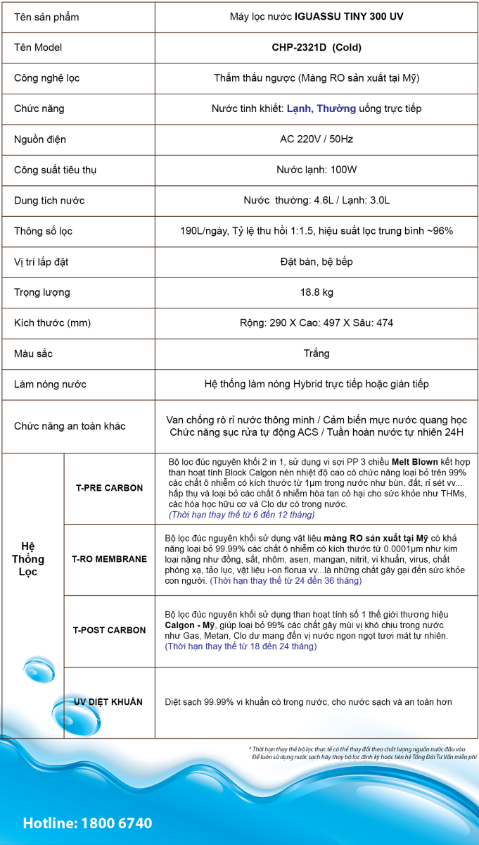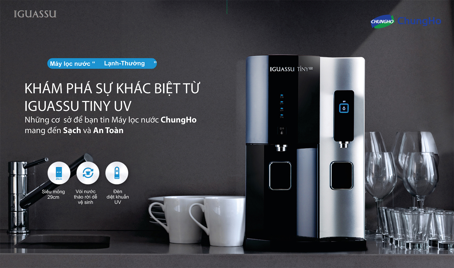 Máy Lọc Nước Chungho TINY 300 UV Hàn Quốc sử dụng công nghệ lọc RO sản xuất tại Mỹ mang đến nguồn nước sạch tinh khiết có thể uống ngay trực tiếp tại vòi sở hữu thiết kế nhỏ gọn, hiện đại phù hợp với mọi không gian.