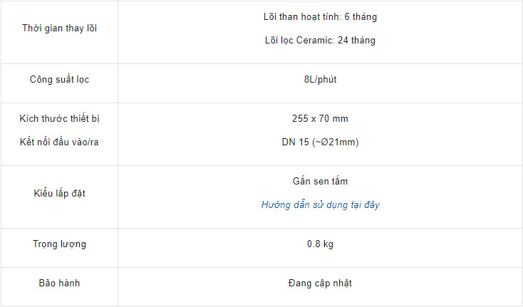Bộ lọc VC: Lõi lọc Ceramic được bổ sung Vitamin, bảo vệ và nuôi dưỡng da và tóc.