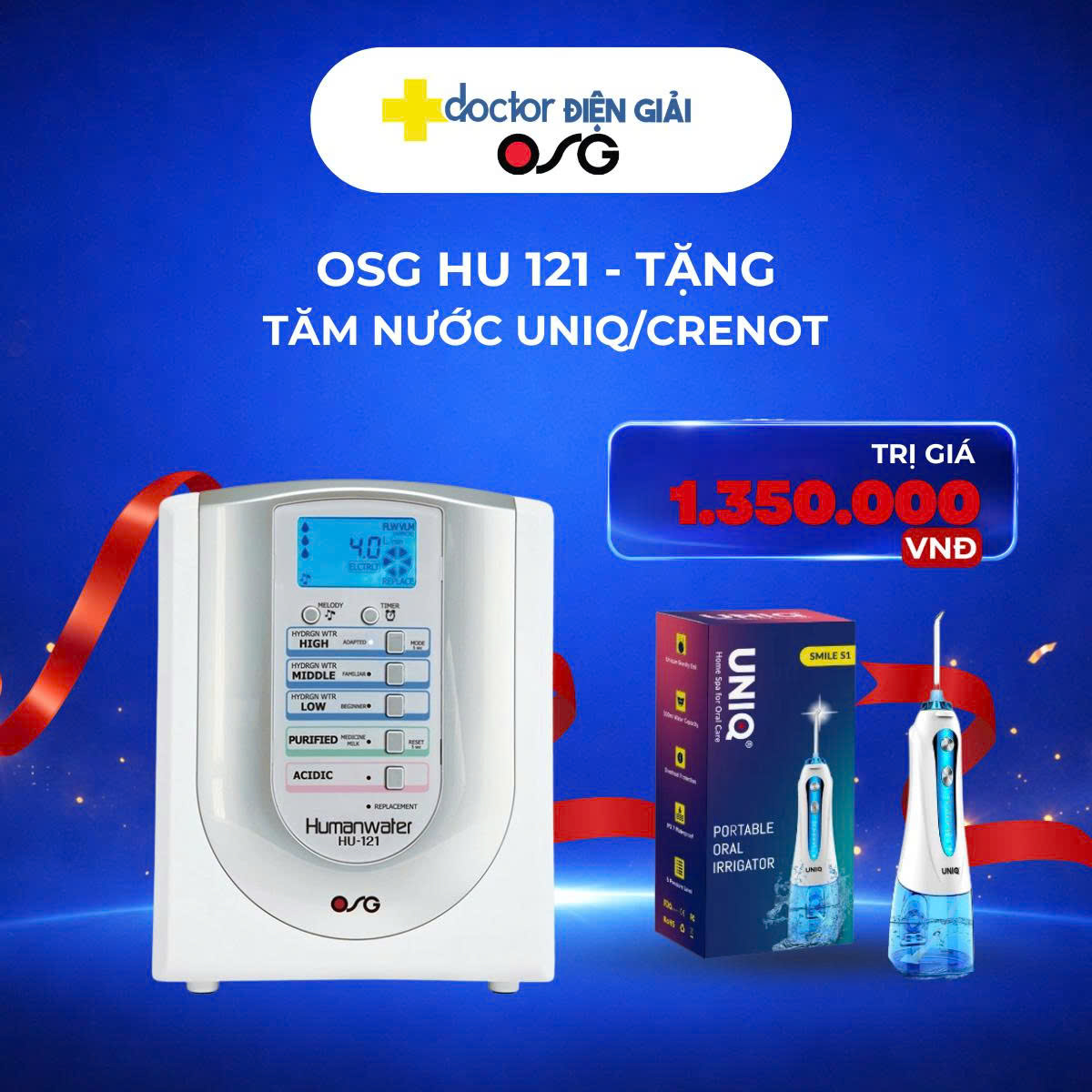 Với dòng Máy lọc nước ion kiềm OSG, Khách hàng sẽ nhận được quà tặng là Tăm nước Smile F1 hoặc S1 trị giá 1.350.000 VNĐ. Máy tăm nước cầm tay Smile F1/S1 là thiết bị chăm sóc răng miệng hiện đại, ứng dụng công nghệ phun tia nước xung tần số cao giúp làm sạch hiệu quả các mảng bám và cặn bẩn tại những vị trí khó tiếp cận như kẽ răng hay viền nướu. Dòng nước được kiểm soát ở mức độ nhẹ nhàng nhưng vẫn đảm bảo lực làm sạch tối ưu, góp phần duy trì khoang miệng sạch sẽ và hơi thở thơm mát.
